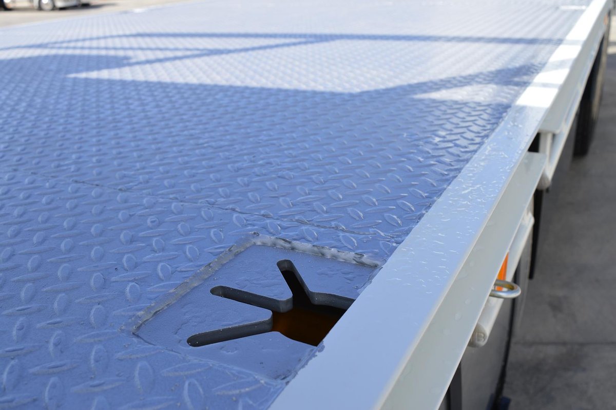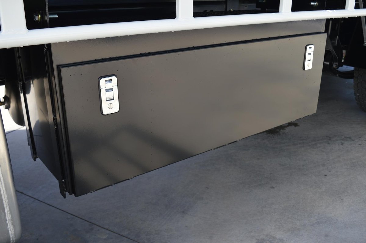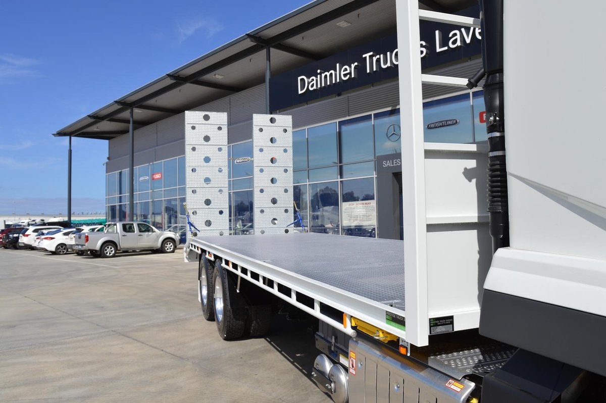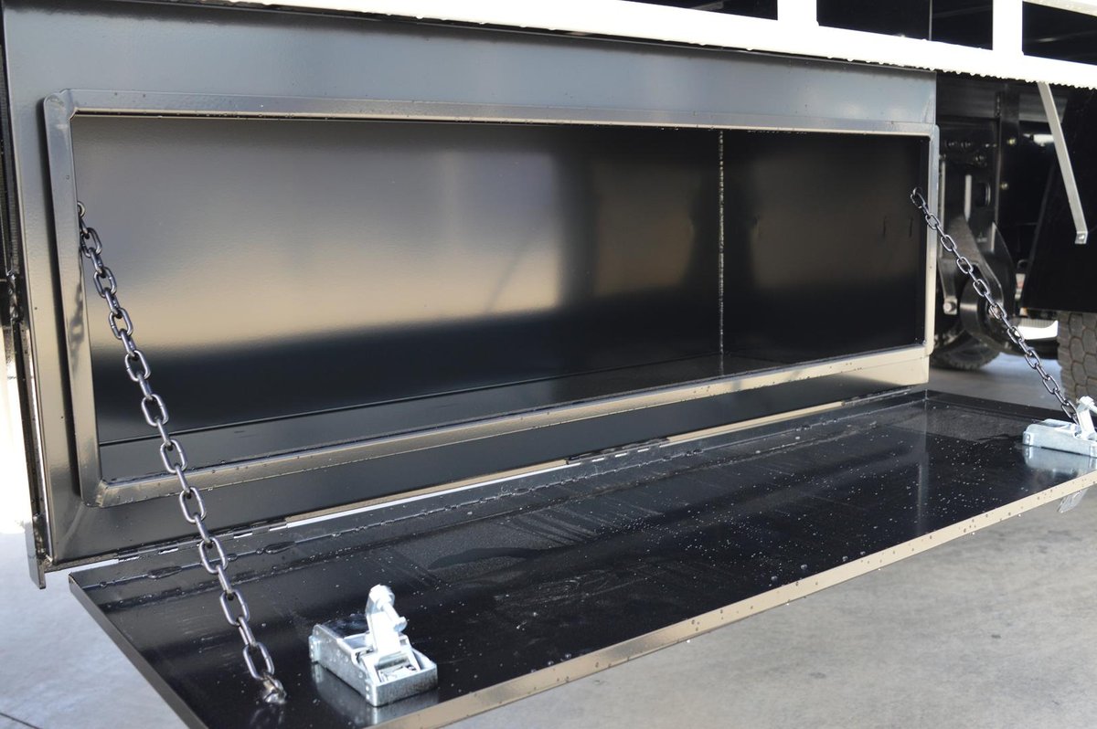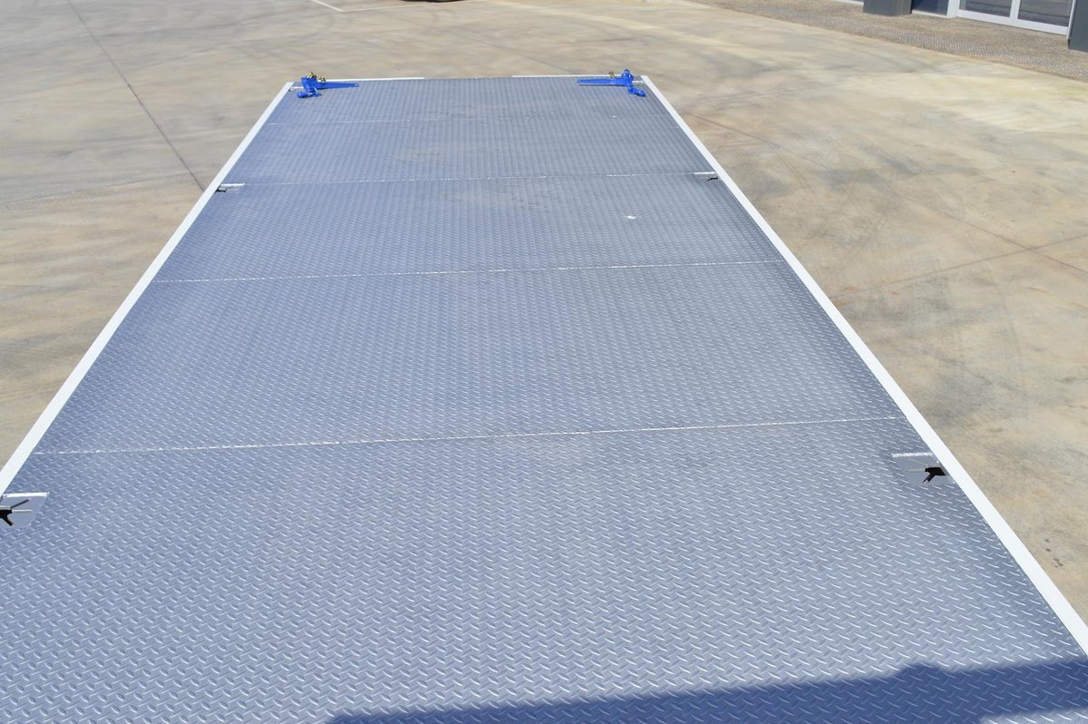 New Shogun FV84 With Beavertail, 900mm wide hydraulic ramps, 5mm steel chequer plate floor, Approx. 1000mm long beavertail section, Eight (8) key ways recessed into tray floor, 1200mm x 450mm x 450mm toolbox.